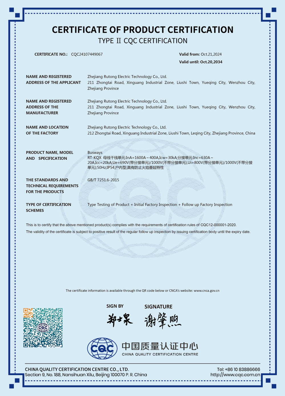 Компания Zhejiang Rutong Electric Technology Co., Ltd. — это специализированное предприятие, объединяющее исследования и разработки, производство, продажи и сервисное обслуживание шинопроводов. Наша основная продукция включает в себя низковольтные компактные шинопроводы, низковольтные шинопроводы с высокой степенью защиты, высоковольтные шинопроводы, огнестойкие шинопроводы, шинопроводы для ветроэнергетики и многое другое. Кроме того, мы предоставляем комплексные услуги, такие как консультации по проектированию, управление проектами, руководство по монтажу и техническое обслуживание продукции.